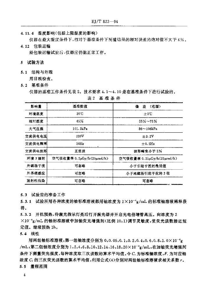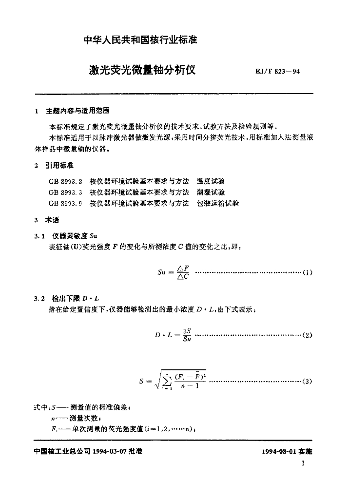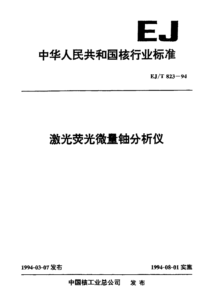 EJ/T 823-1994 激光荧光微量铀分析仪