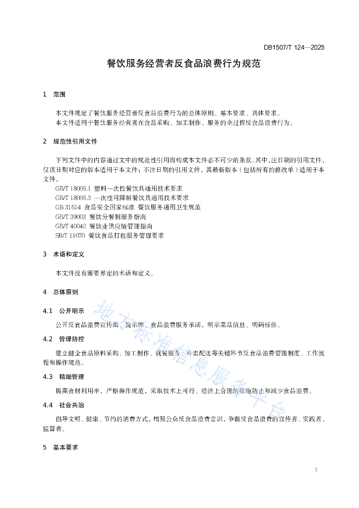 DB1507/T 124-2025 餐饮服务经营者反食品浪费行为规范