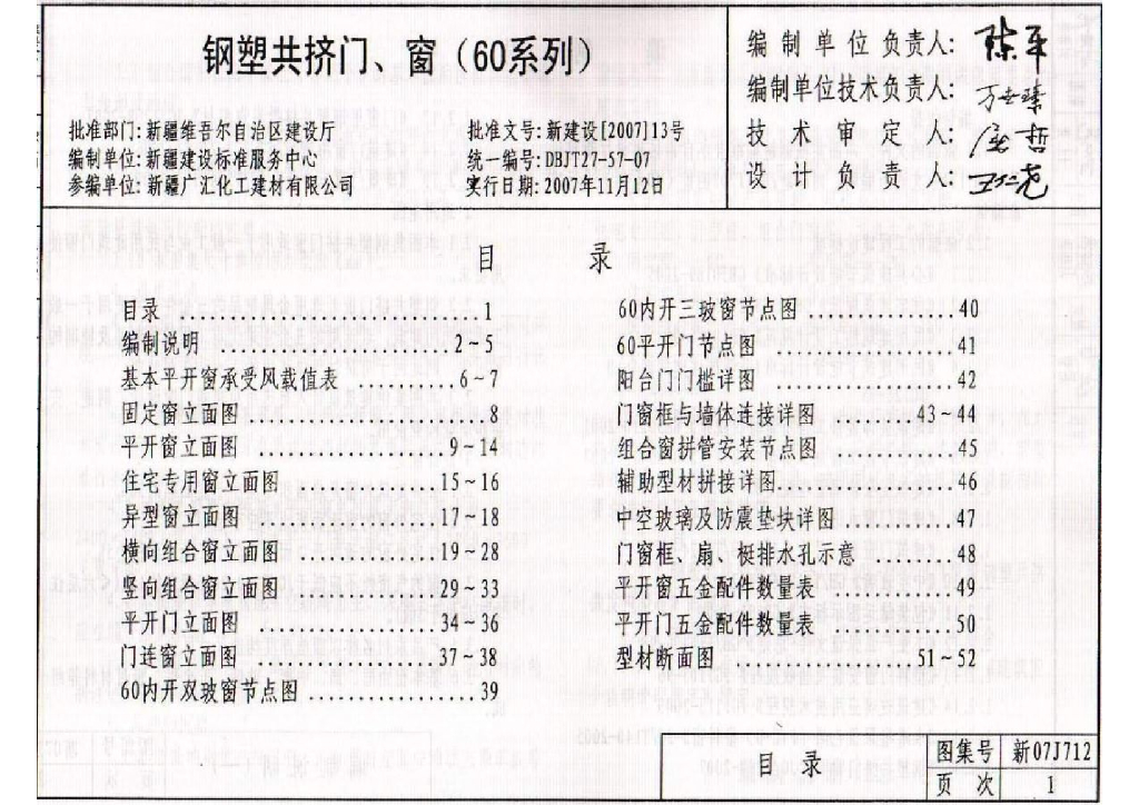 新07J712 钢塑共挤门、窗(60系列)图集