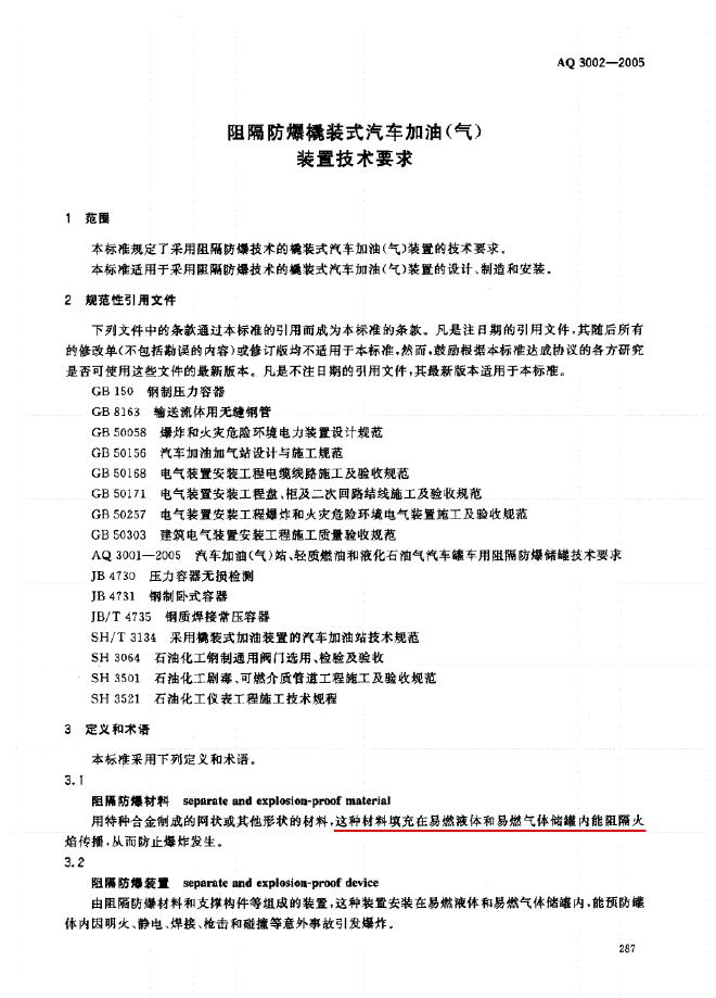 AQ 3002-2005 阻隔防爆撬装式汽车加油(气)装置技术要求