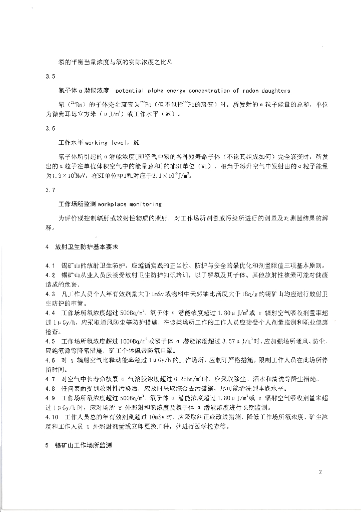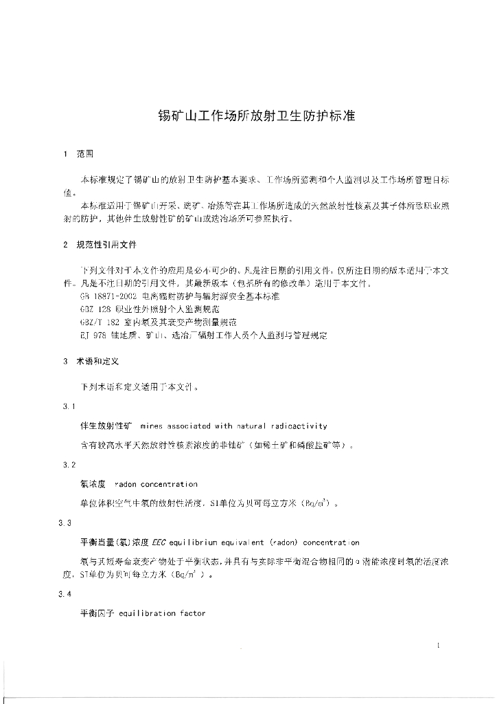 GBZ/T 233-2010 锡矿山工作场所放射卫生防护标准