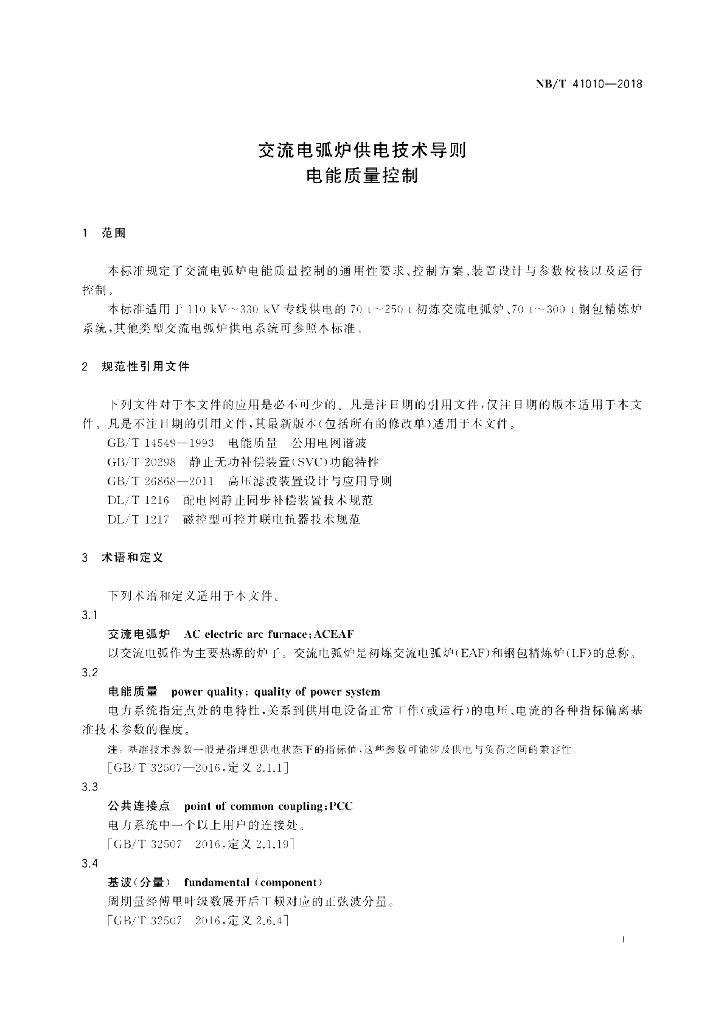 NB/T 41010-2018 交流电弧炉供电技术导则电能质量控制