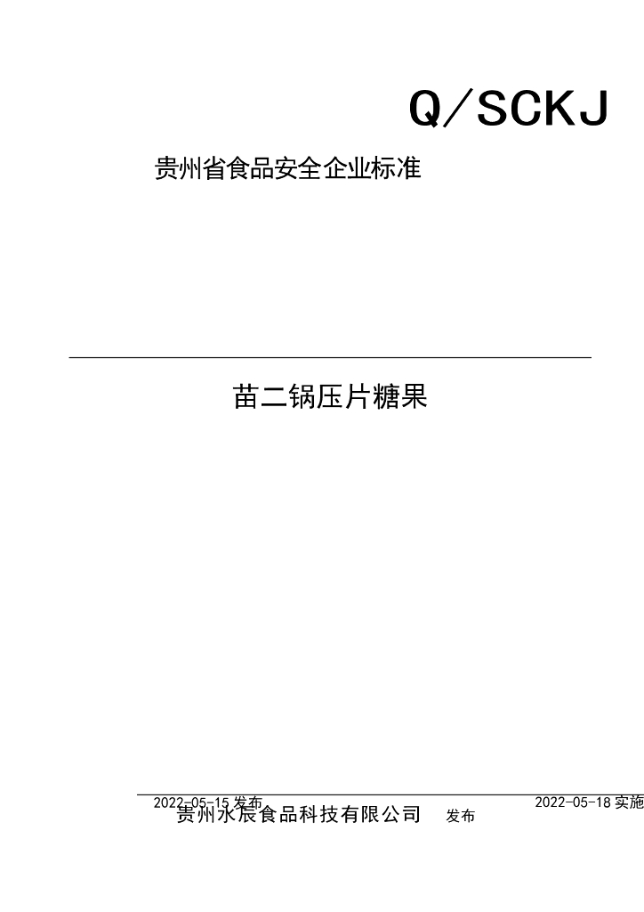 Q/SCKJ 0002S-2022 苗二锅压片糖果