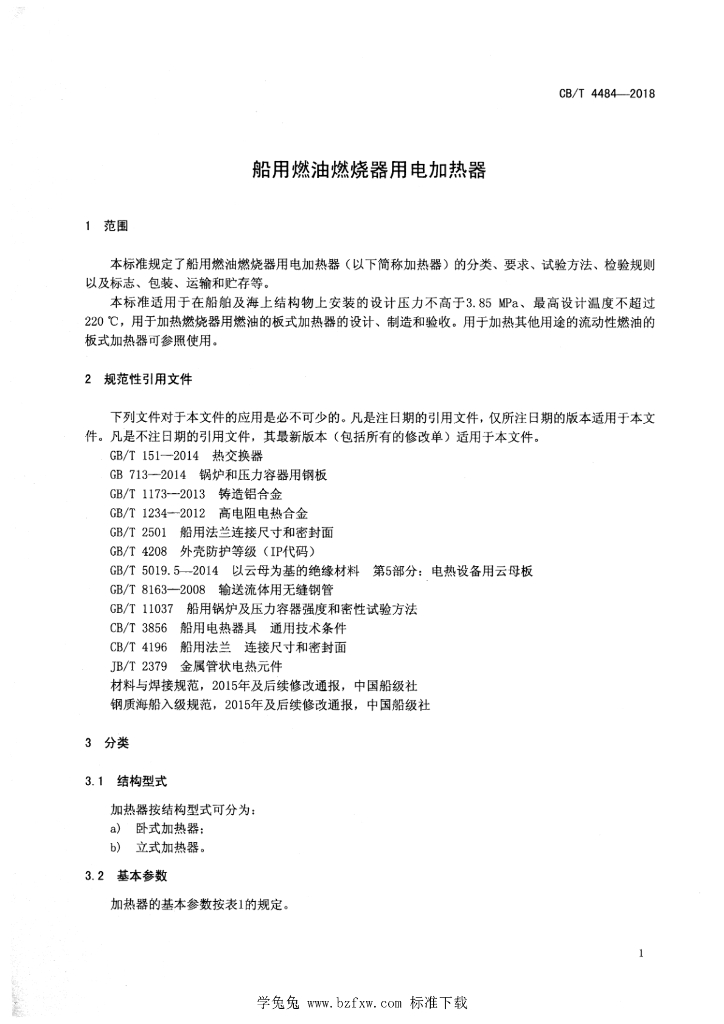 CB/T 4484-2018 船用燃油燃烧器用电加热器