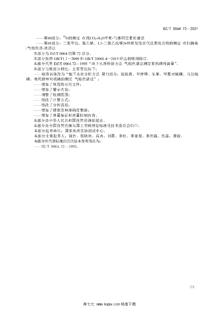 DZ/T 0064.72-2021 地下水质分析方法 第72部分:敌敌畏、甲拌磷、乐果、甲基对硫磷、马拉硫磷、毒死蜱和对硫磷的测定 气相色谱法