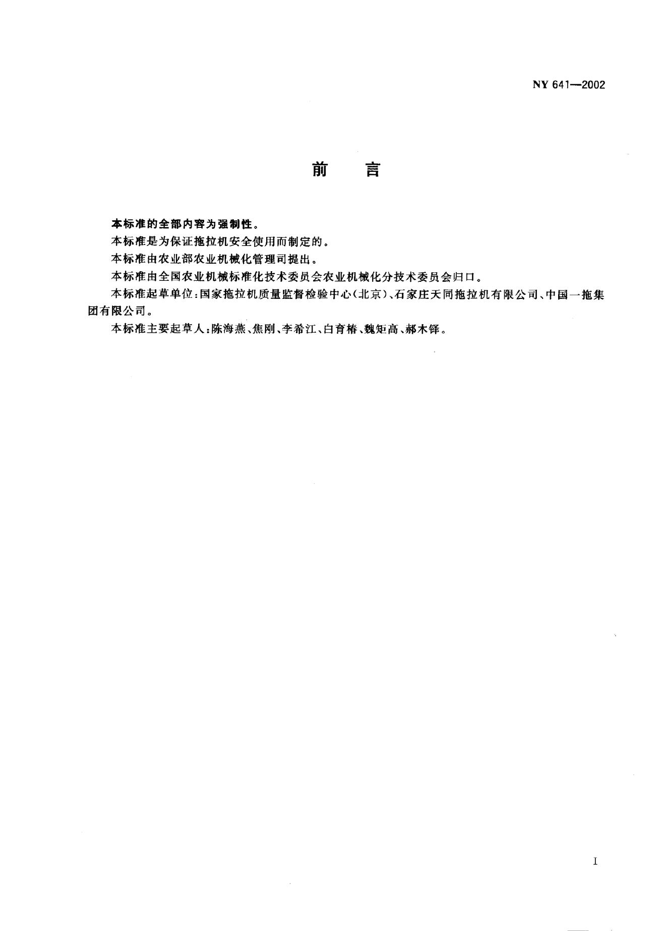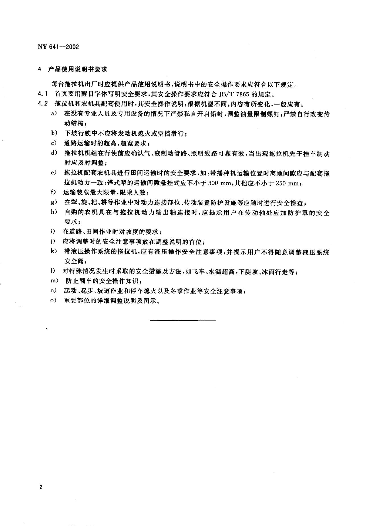 NY 641-2002 农业拖拉机安全技术条件