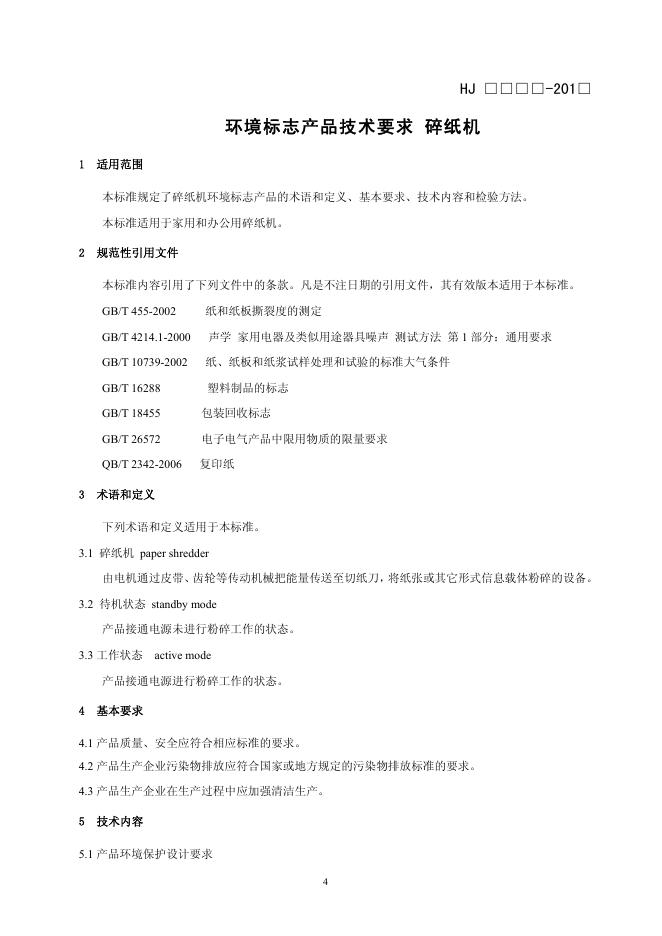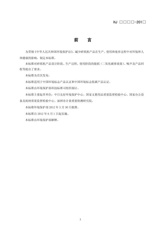 HJ 2509-2012 环境标志产品技术要求 碎纸机
