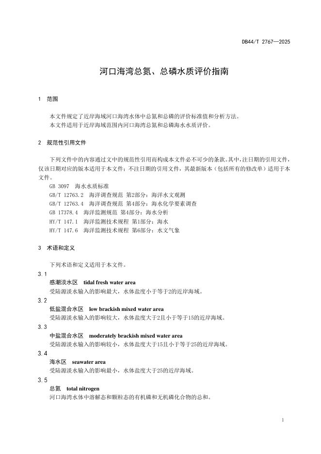 DB44/T 2767-2025 河口海湾总氮、总磷水质评价指南
