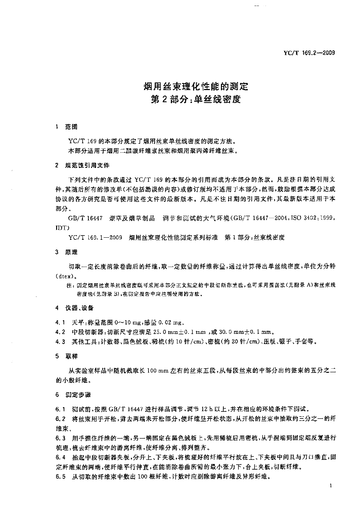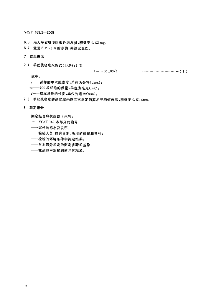 YC/T 169.2-2009 烟用丝束理化性能的测定 第2部分:单丝线密度