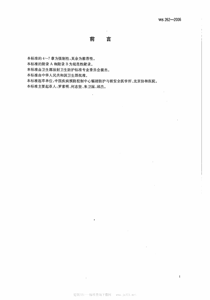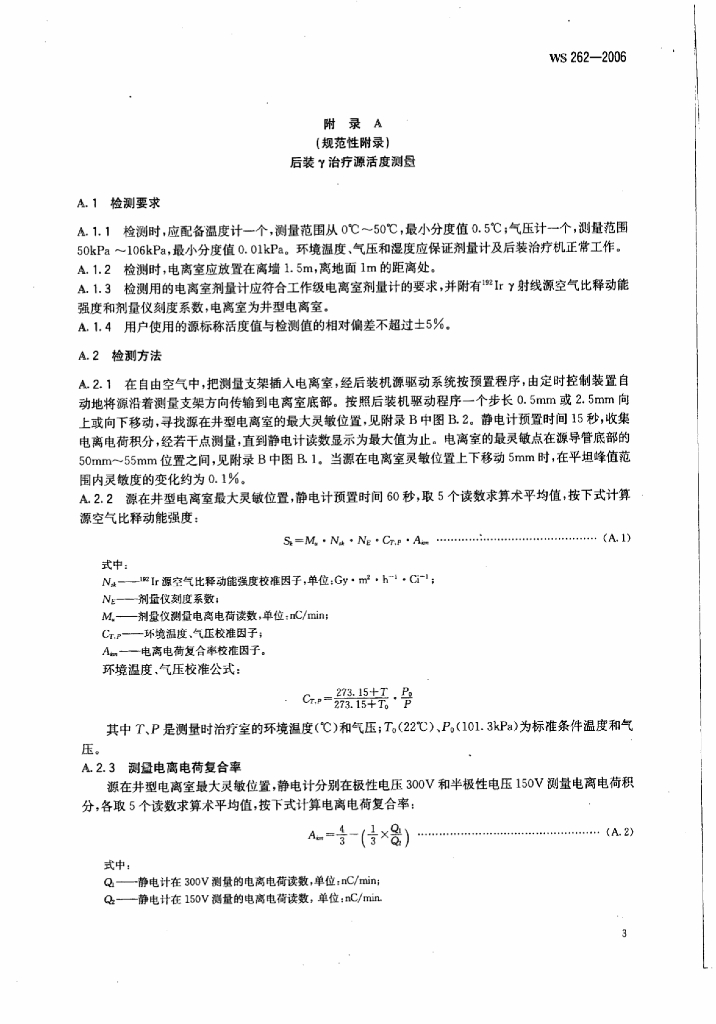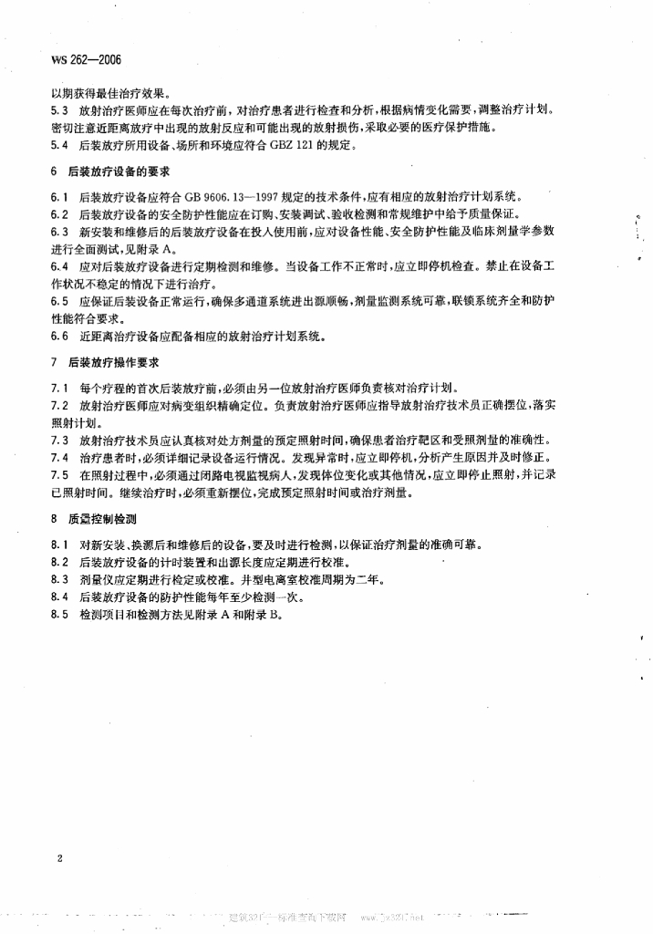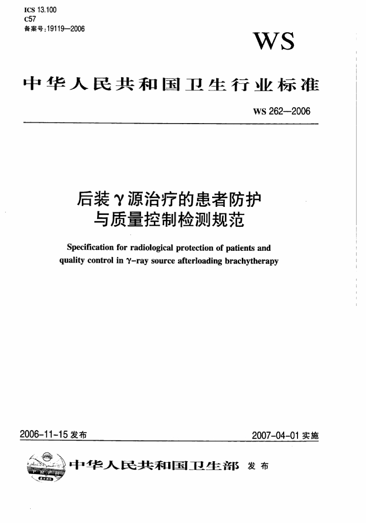 WS 262-2006 后装γ源治疗的患者防护与质量控制检测规范