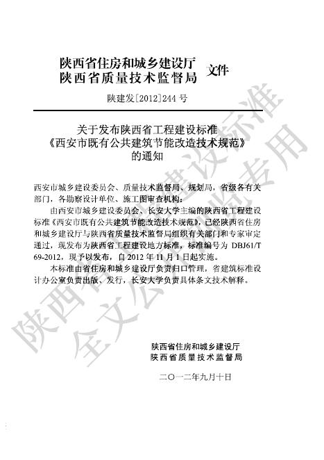DBJ61/T 69-2012 西安市既有公共建筑节能改造技术规范