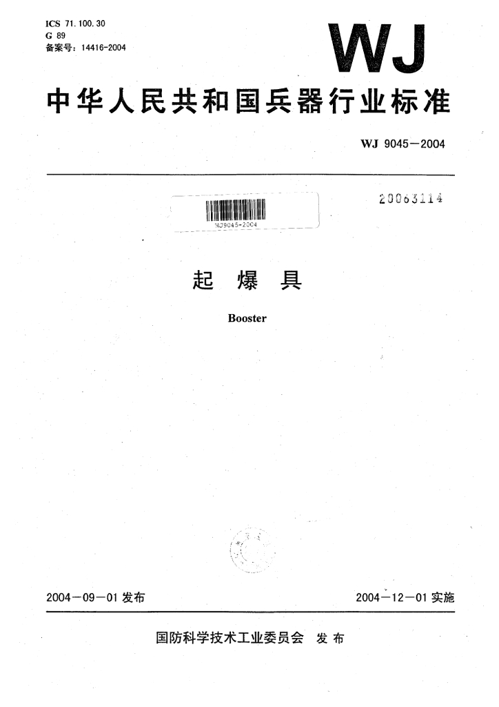 WJ 9045-2004 起爆具