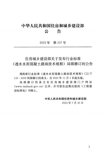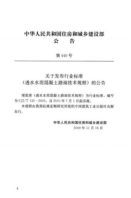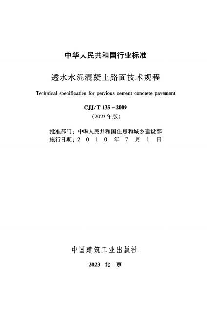 CJJ/T 135-2009 透水水泥混凝土路面技术规程(2023年版)