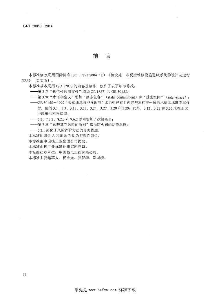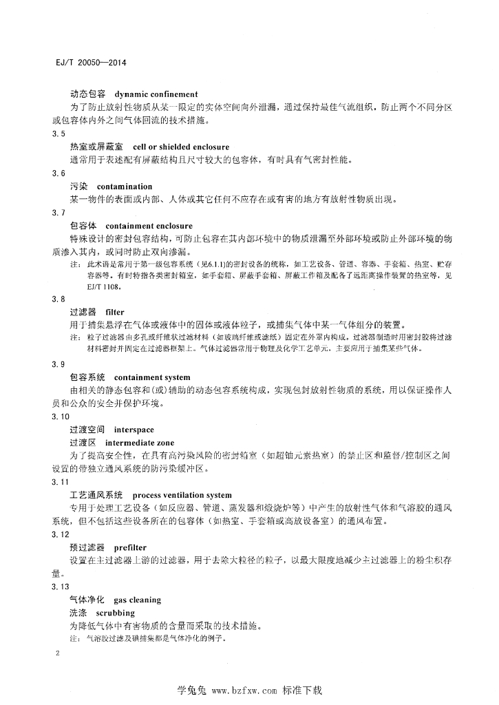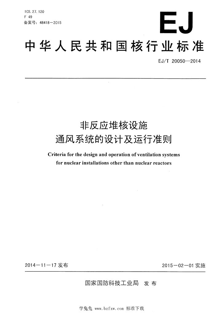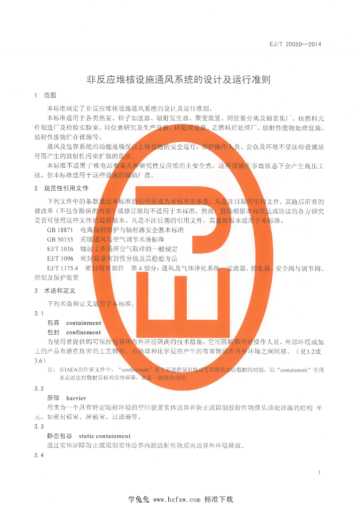 EJ/T 20050-2014 非反应堆核设施通风系统的设计及运行准则
