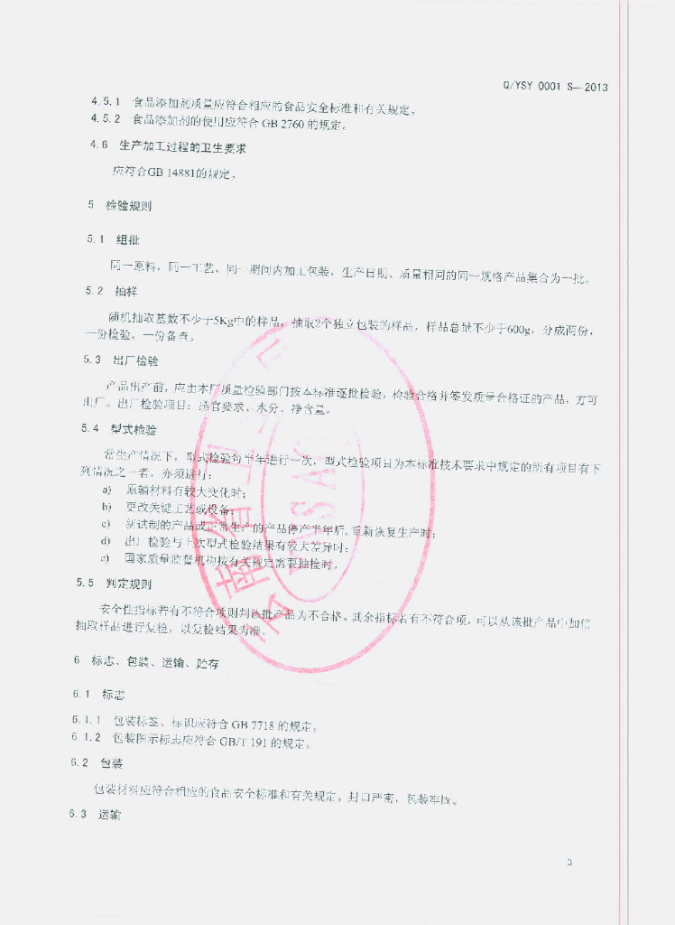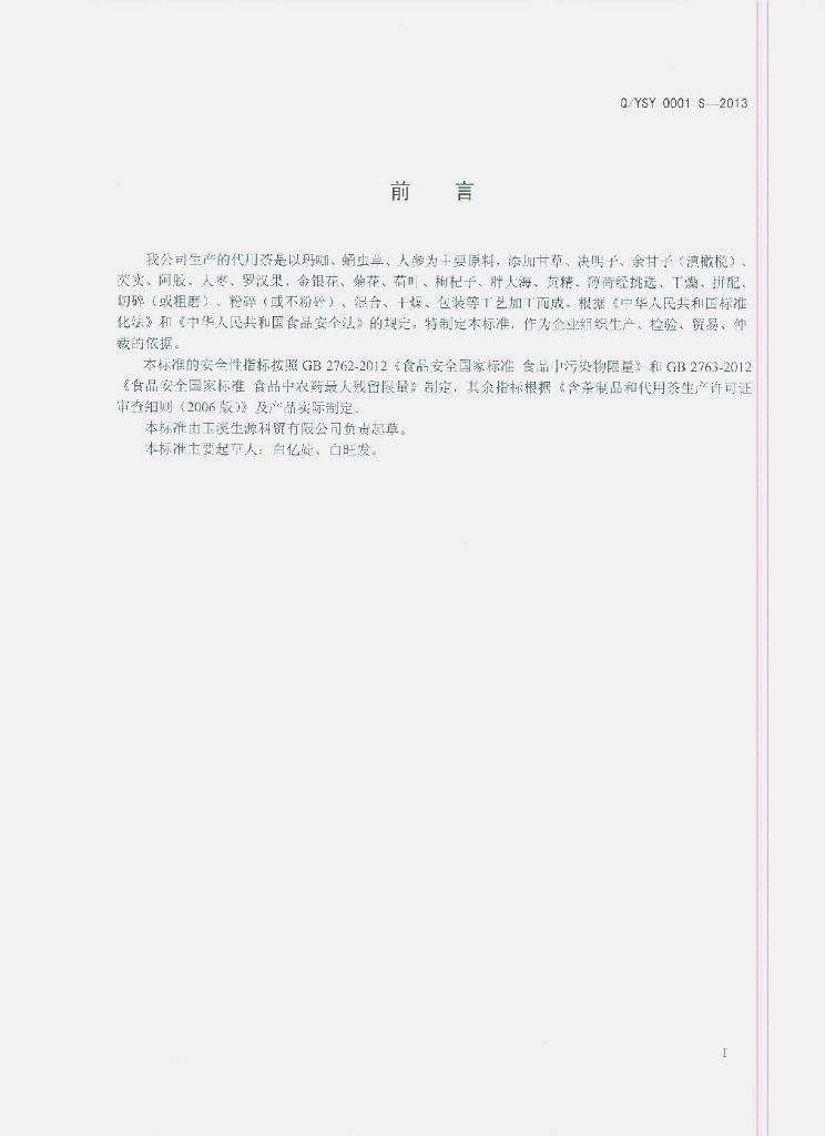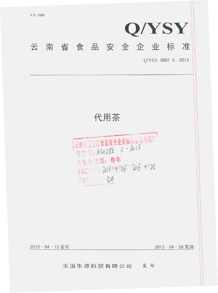 Q/YSY 0001S-2013 代用茶