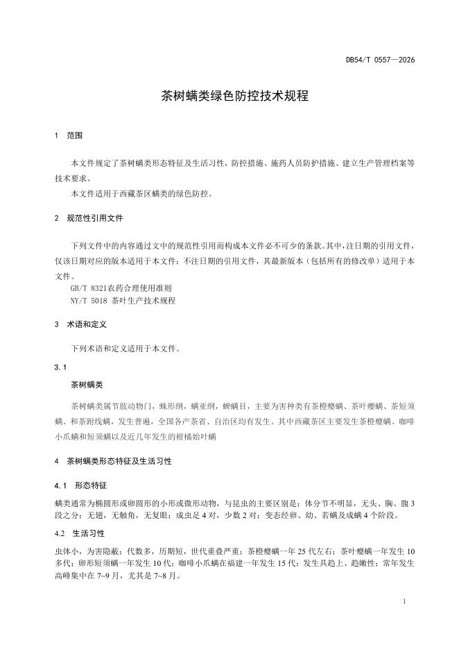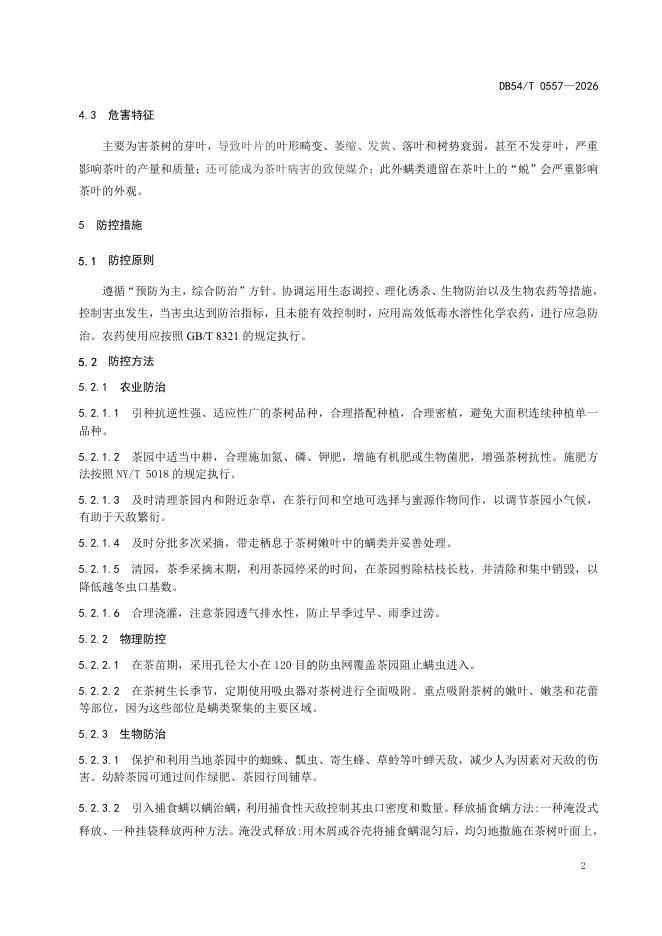 DB54/T 0557-2026 茶树螨类绿色防控技术规程