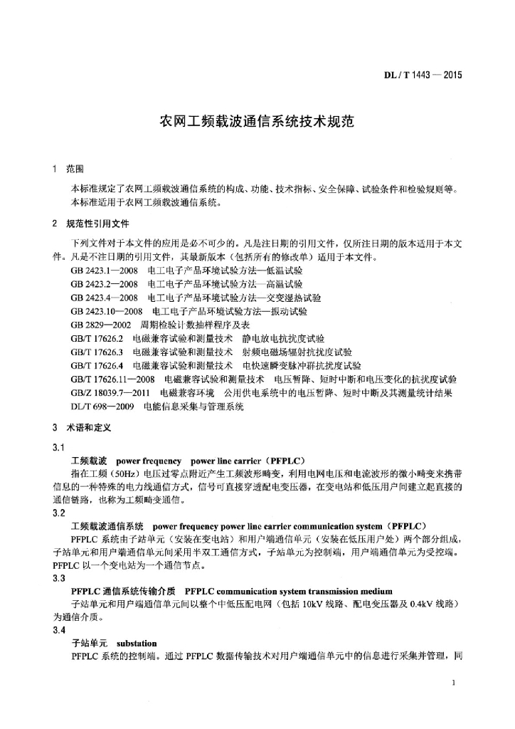DL/T 1443-2015 农网工频载波通信系统技术规范