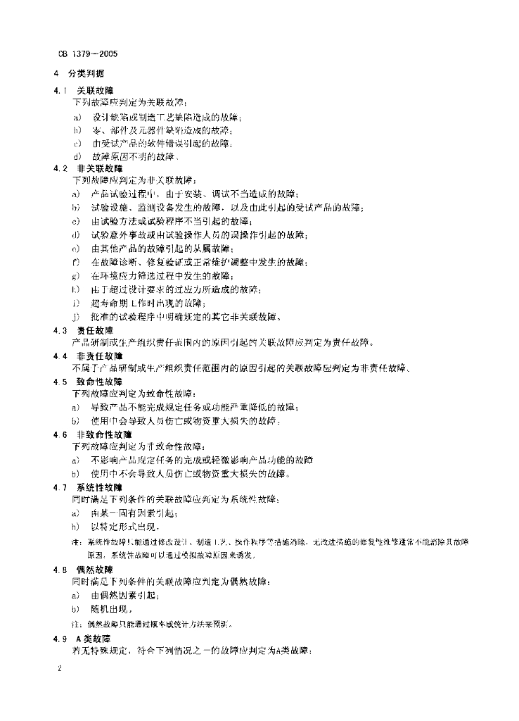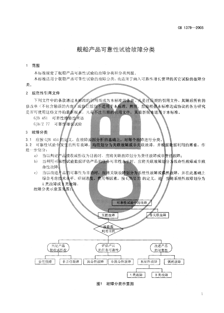 CB 1379-2005 舰船产品可靠性试验故障分类