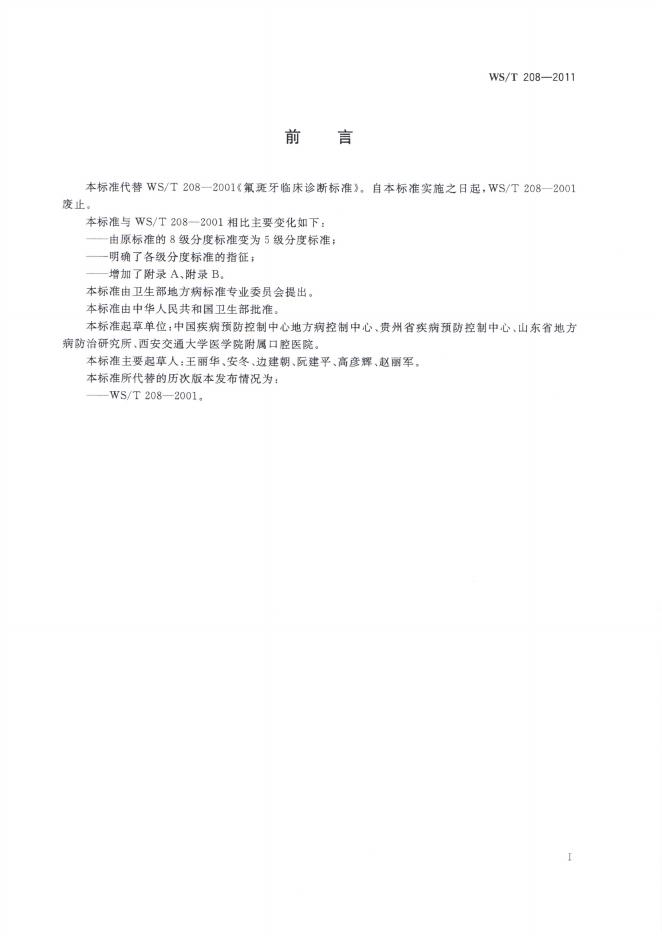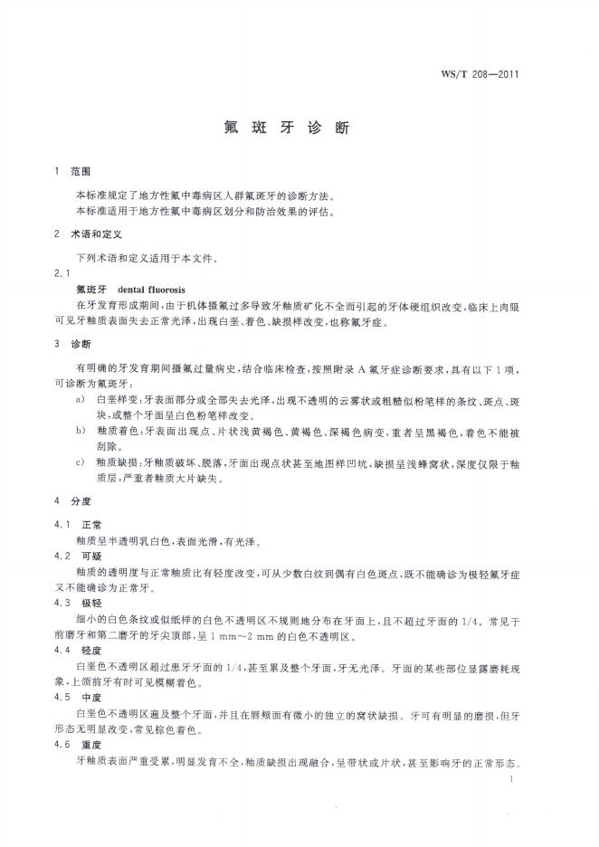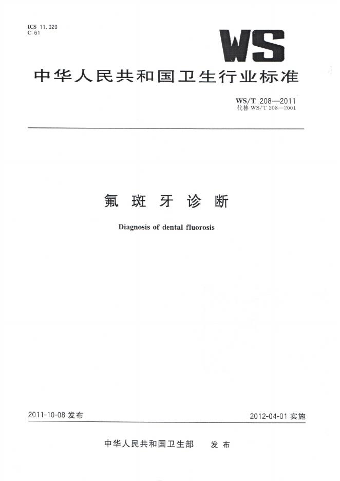WS/T 208-2011 氟斑牙诊断