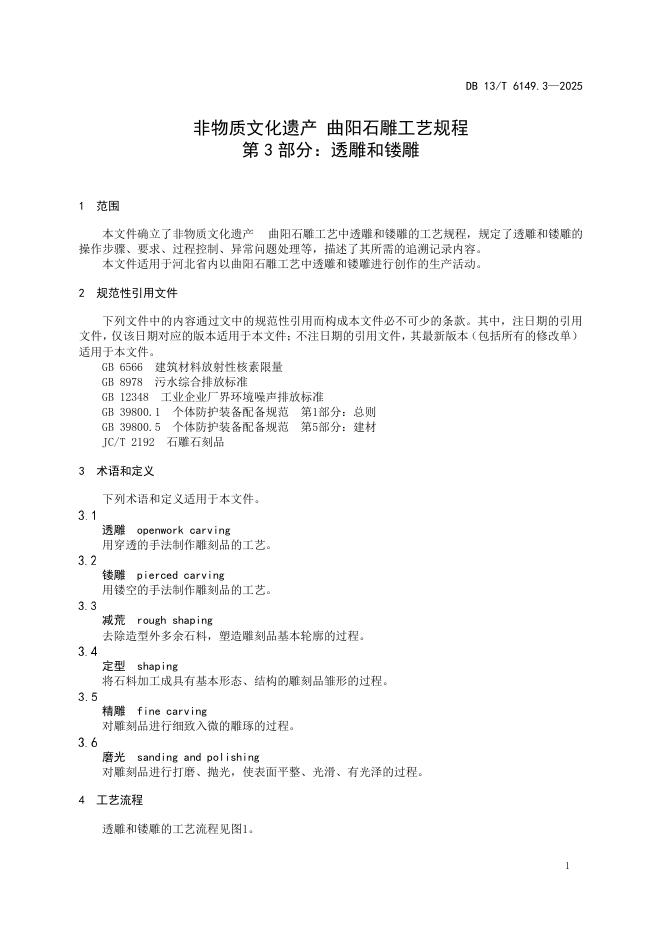 DB13/T 6149.3-2025 非物质文化遗产 曲阳石雕工艺规程 第3部分:透雕和镂雕