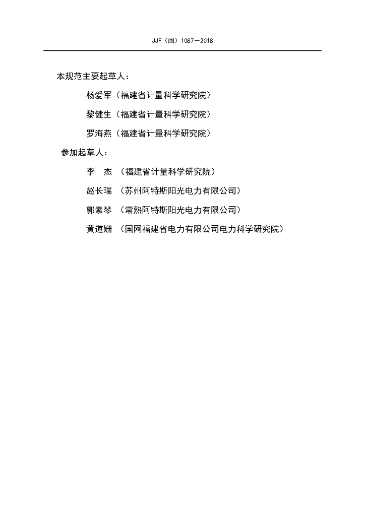王仁书(福建省计量科学研究院)、沈熠辉(福建省计量科学研究院)、徐欣(台州市计量技术研究院)、李杰(福建省计量科学研究院)、罗海燕(福建省计量科学研究院)、林剑春(清华海峡研究院(厦门))、张树德(苏州腾晖光伏技术有限公司)