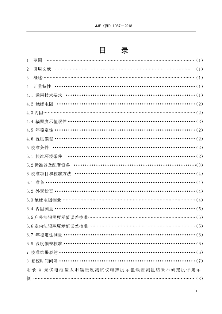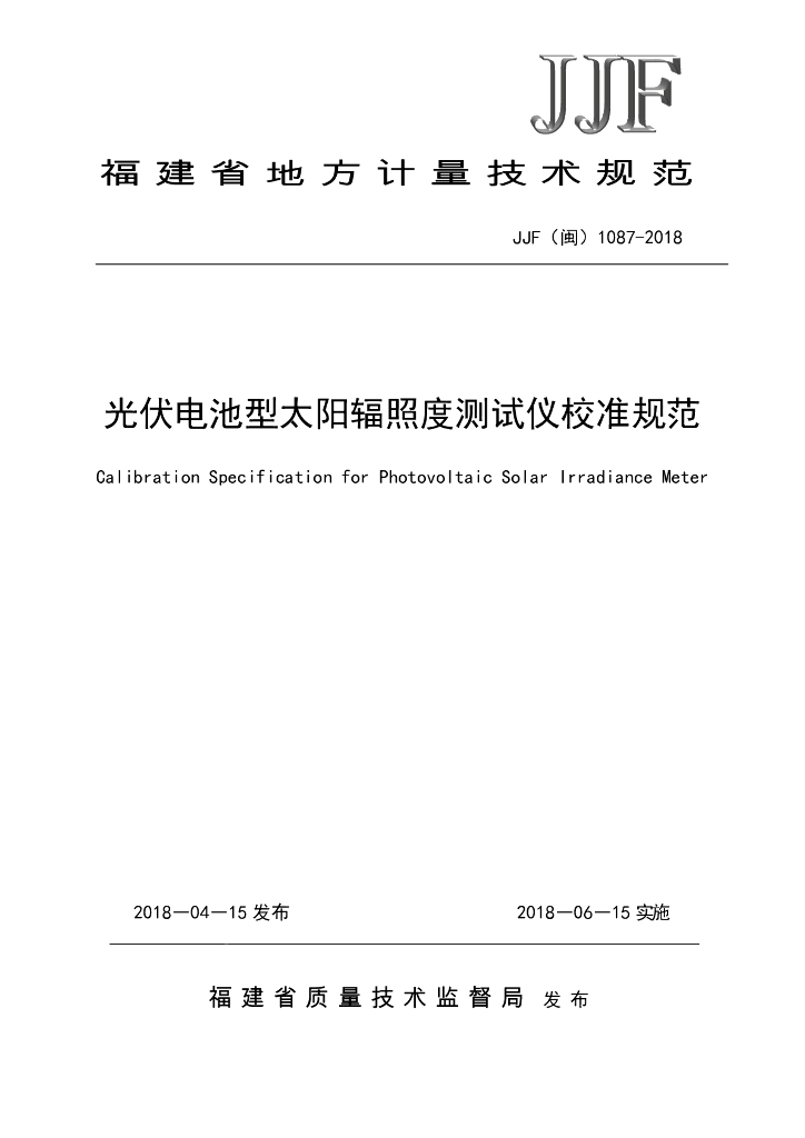 JJF(闽)1087-2018 光伏电池型太阳辐照度测试仪校准规范