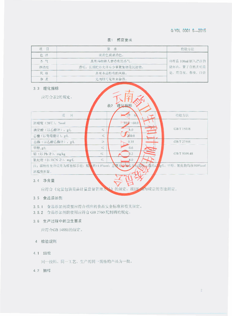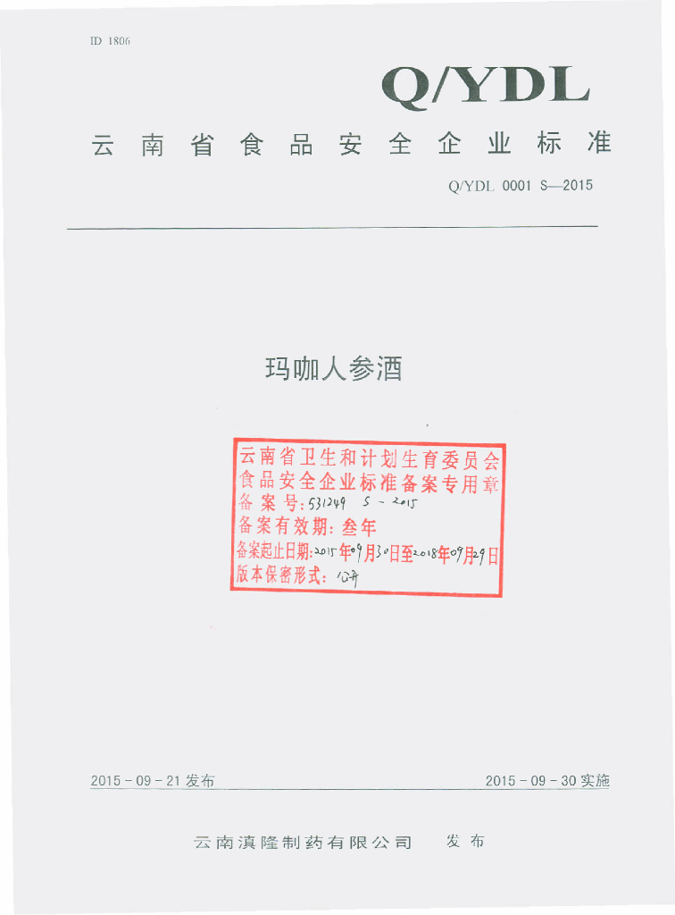 Q/YDL 0001S-2015 云南滇隆制药有限公司 玛咖人参酒