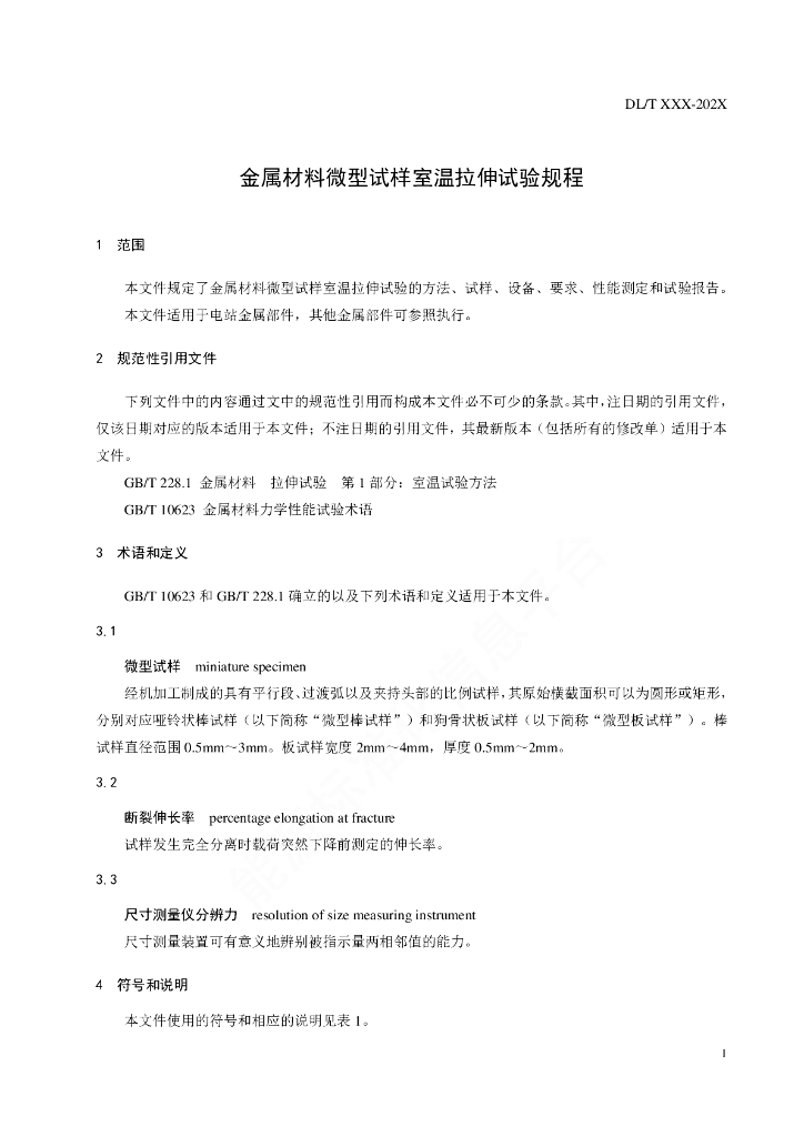 DL/T 2363-2021 金属材料微型试样室温拉伸试验规程