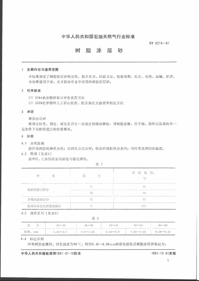 SY 5274-1991 树脂涂层砂
