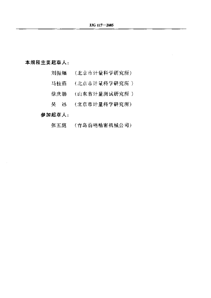刘振幅(北京市计量科学研究所)、马桂茹(北京市计量科学研究所)、徐庆渤(山东省计量测试研究所)、吴迅(北京市计量科学研究所)、张五庭(青岛前哨精密机械公司)