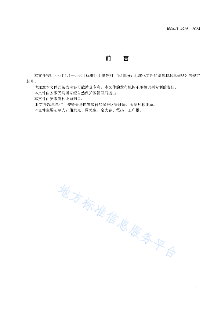 DB34/T 4965-2024 安徽麝栖息地保护技术规程