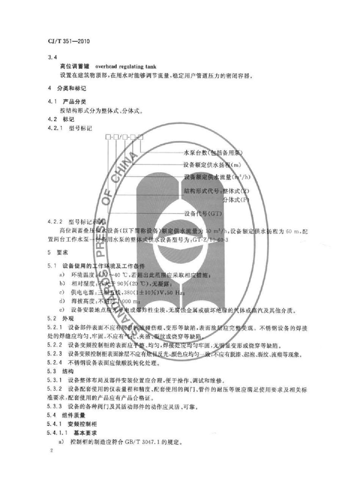CJ/T 351-2010 高位调蓄叠压供水设备