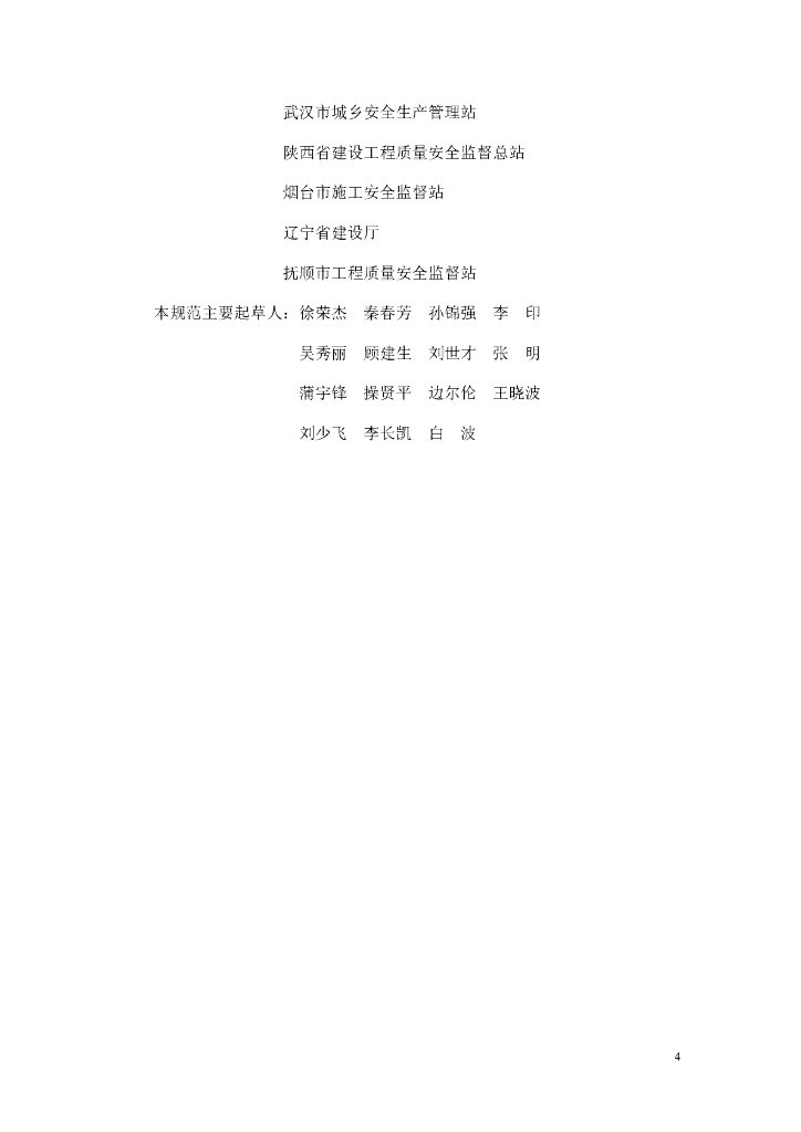 沈阳建筑大学、中国建筑业协会建筑安全分会、上海市建设安全协会、山东省建筑施工安全监督站、江苏省建筑安全与设备管理协会、安徽省建设行业安全协会、云南省建设工程安全监督站、武汉市城乡安全生产管理站、陕西省建设工程质量安全监督总站、烟台市施工安全监督站、辽宁省建设厅、抚顺市工程质量安全监督站