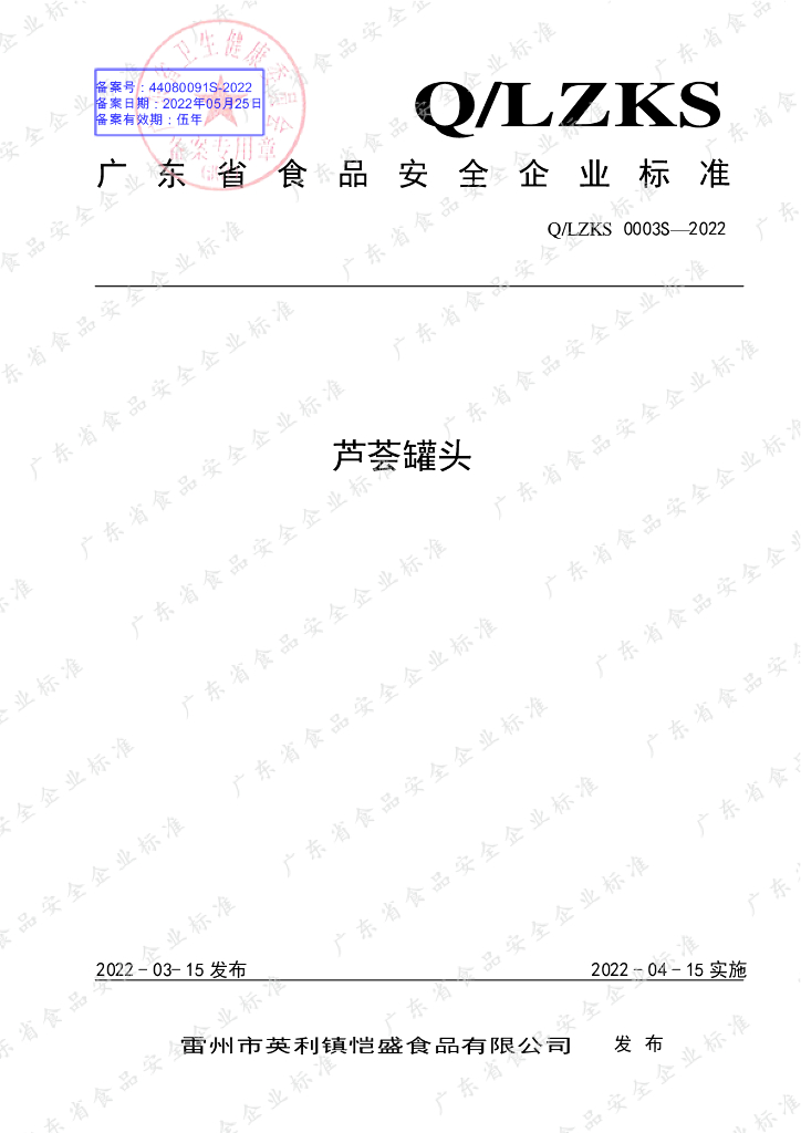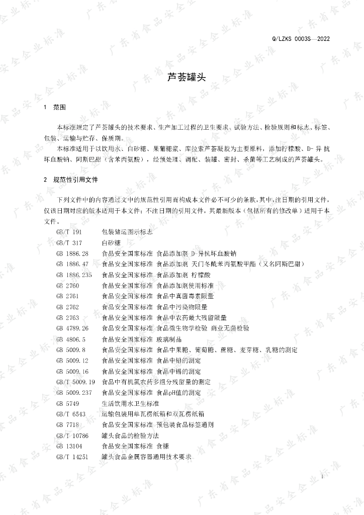 Q/LZKS 0003S-2022 芦荟罐头