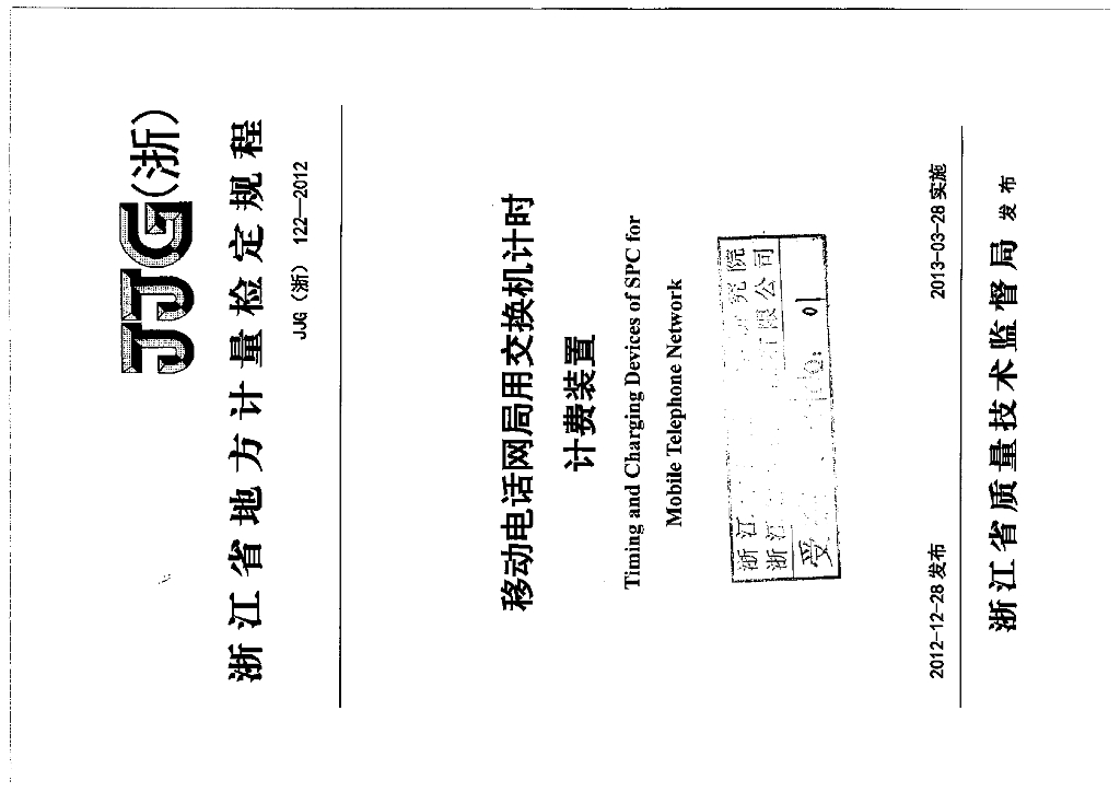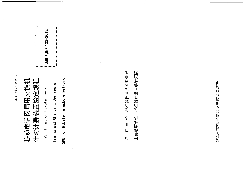 JJG(浙)122-2012 移动电话网局用交换机计时计费装置检定规程