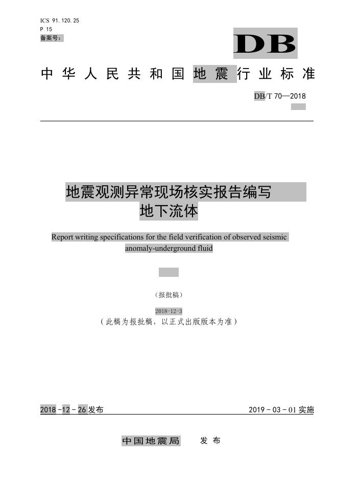 DB/T 70-2018 地震观测异常现场核实报告编写 地下流体