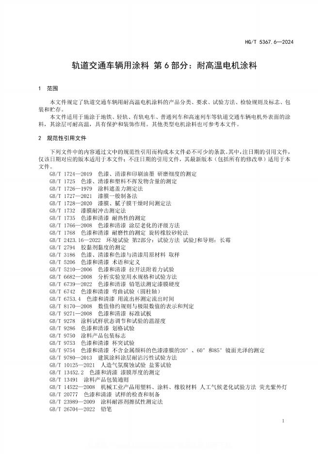 HG/T 5367.6-2024 轨道交通车辆用涂料 第6部分:耐高温电机涂料