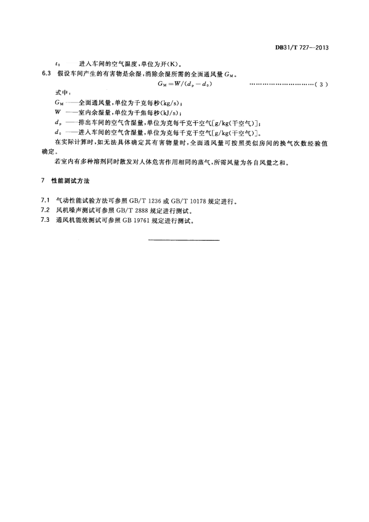 DB31/T 727-2013 工业企业屋顶排风机系统节能改造技术规范