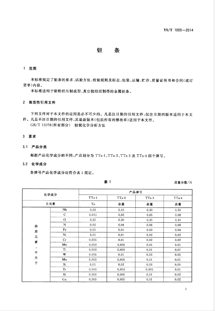 YS/T 1005-2014 钽条
