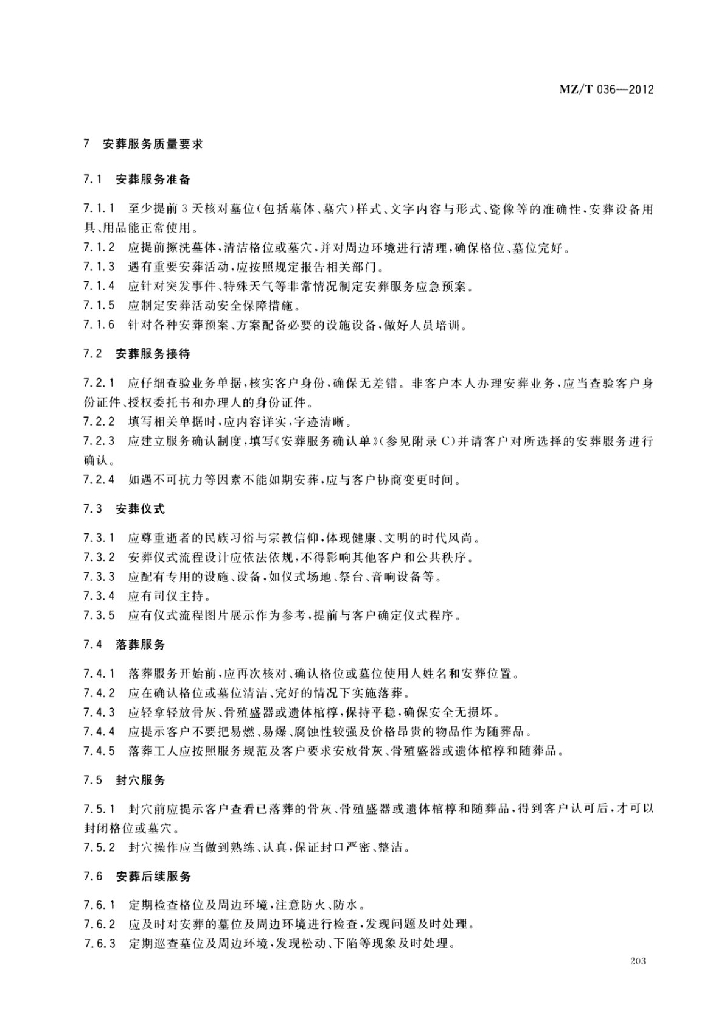 MZ/T 036-2012 公墓安葬服务