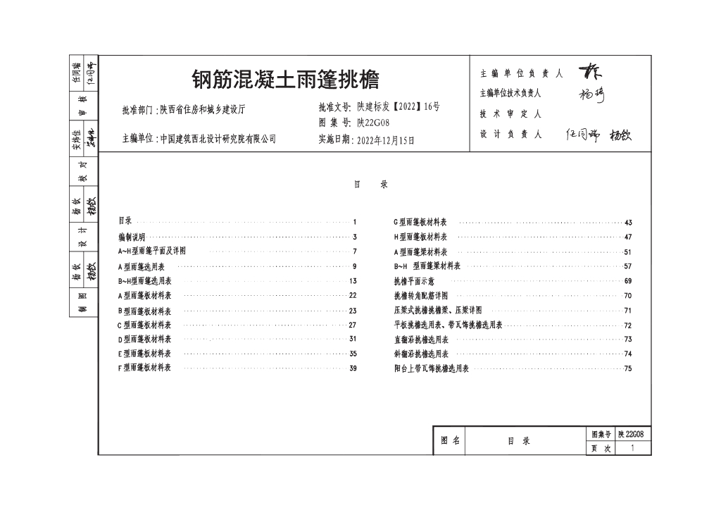 陕22G08 钢筋混凝土雨篷挑檐图集
