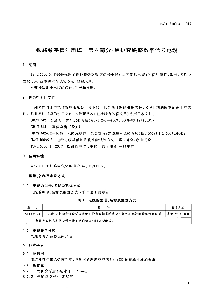 TB/T 3100.4-2017 铁路数字信号电缆 第4部分:铝护套铁路数字信号电缆