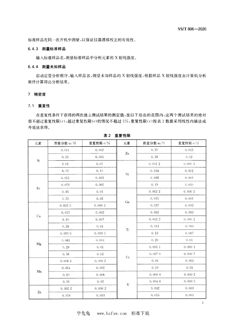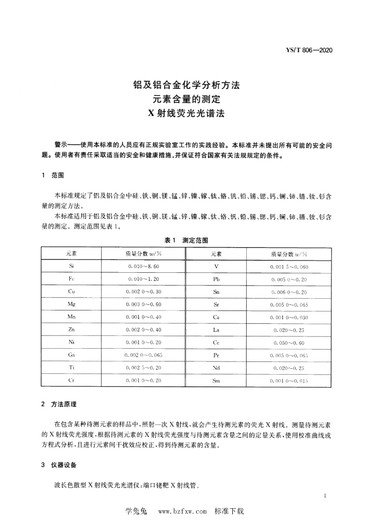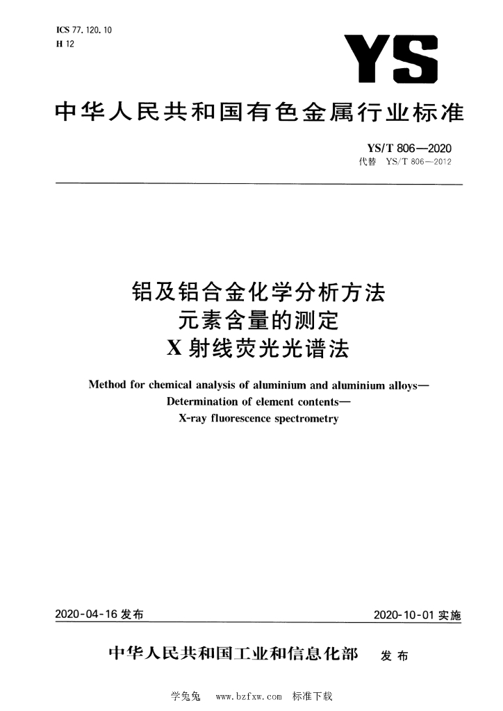 YS/T 806-2020 铝及铝合金化学分析方法 元素含量的测定 X射线荧光光谱法