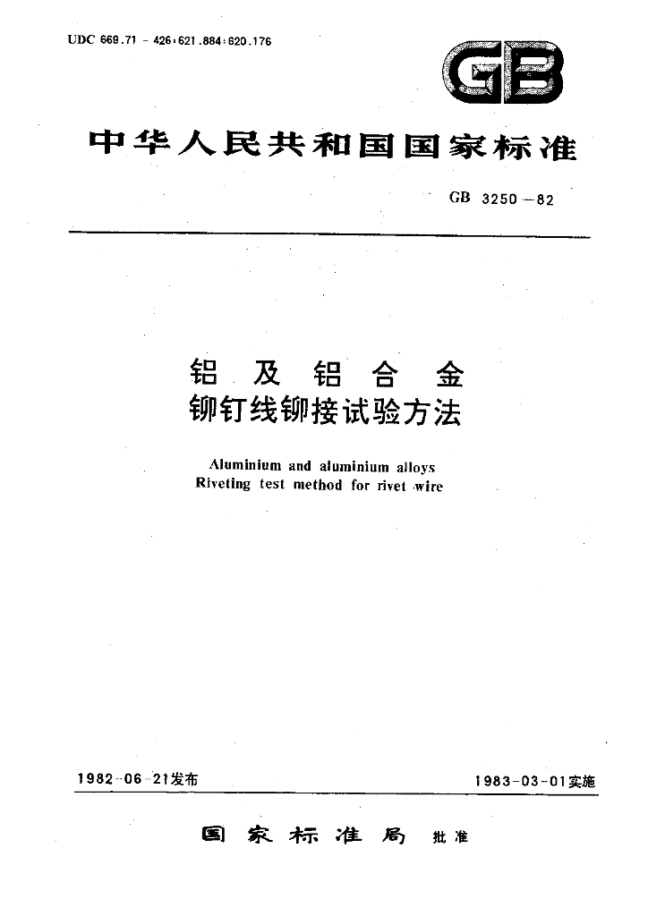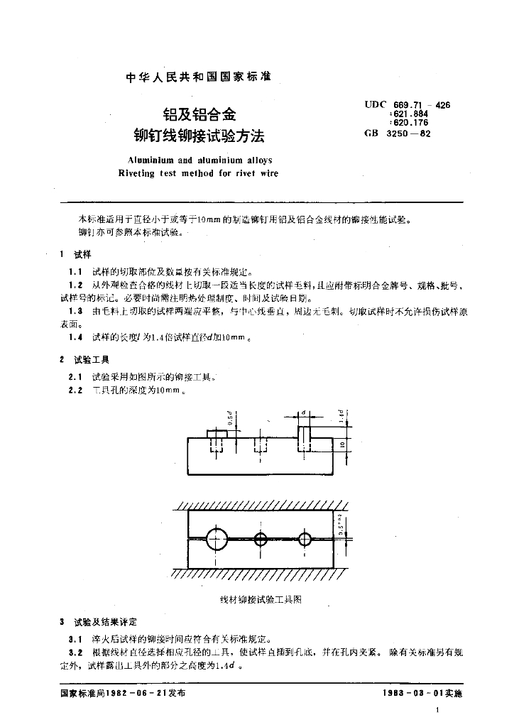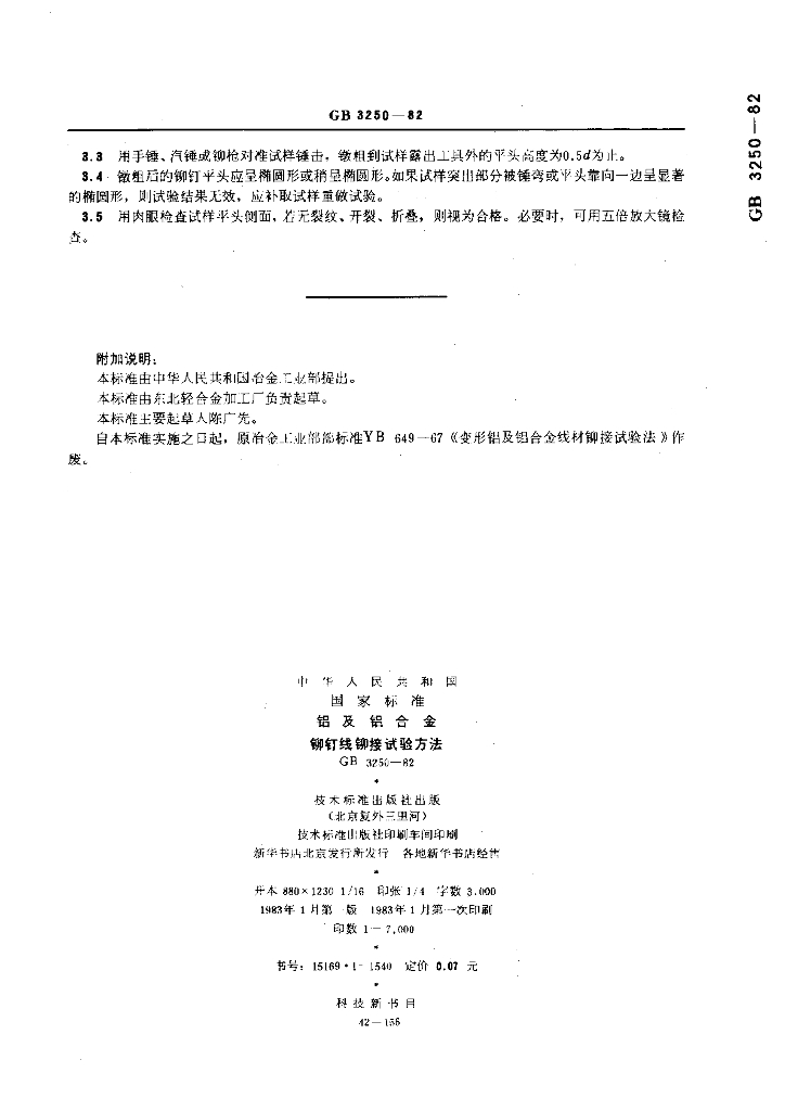 GB/T 3250-1982 铝及铝合金铆钉线铆接试验方法