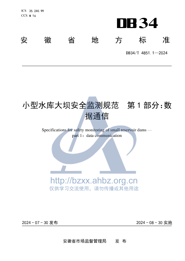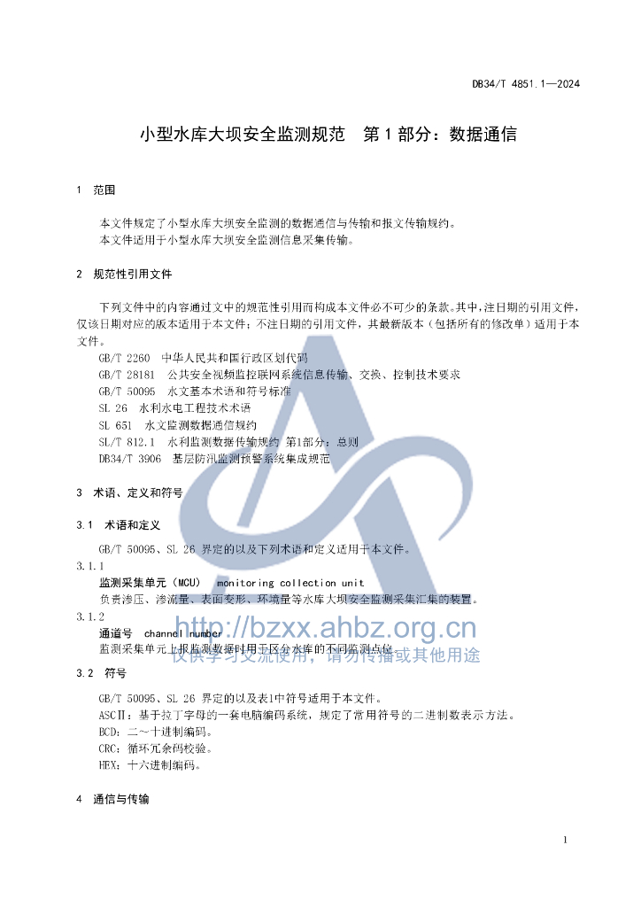 DB34/T 4851.1-2024 小型水库大坝安全监测规范 第1部分:数据通信