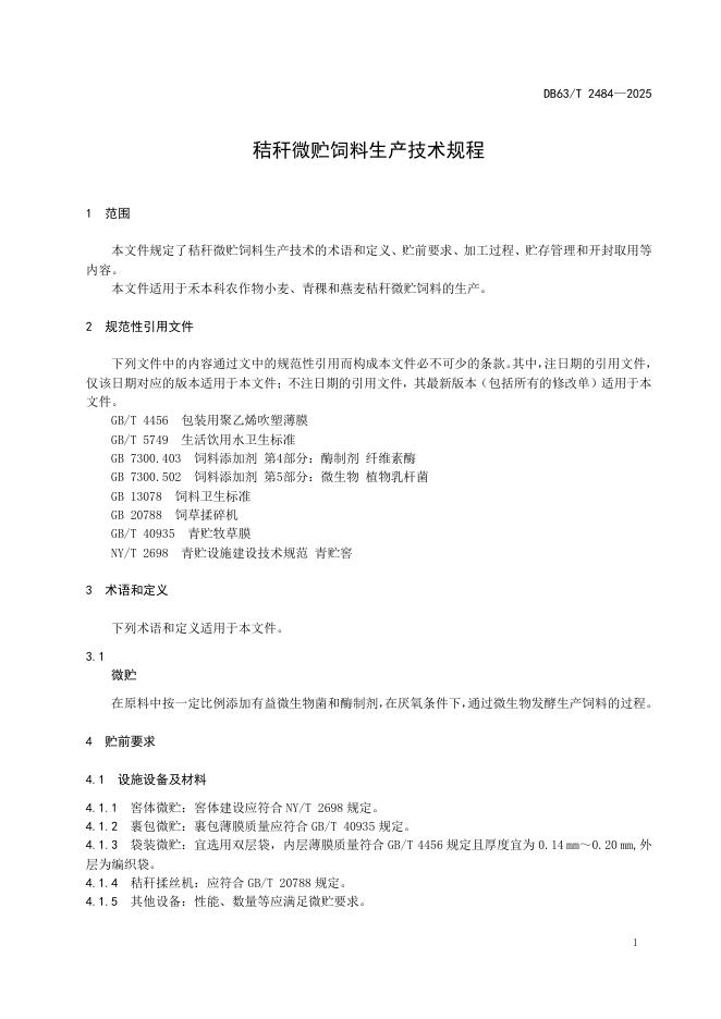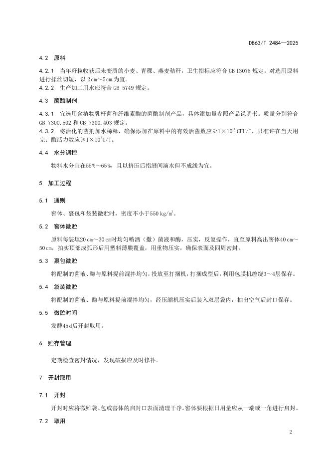 DB63/T 2484-2025 秸秆微贮饲料生产技术规程