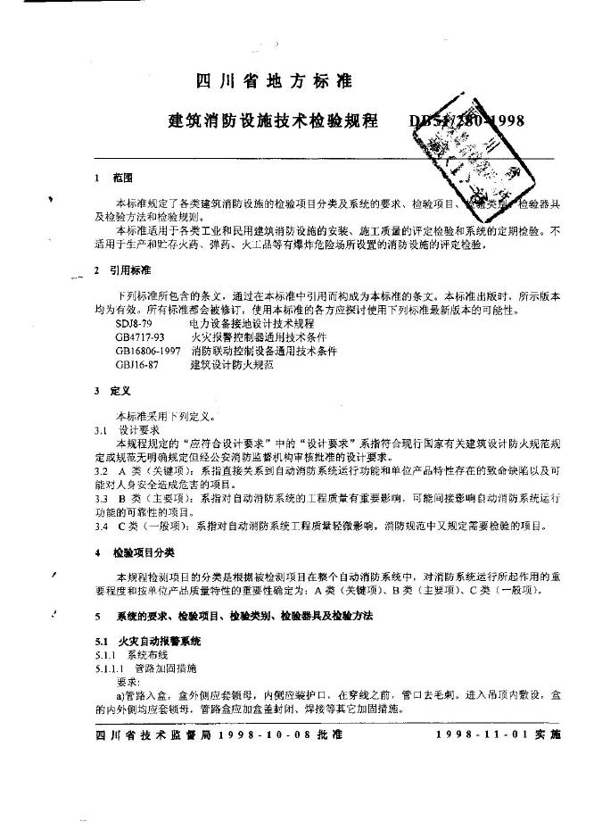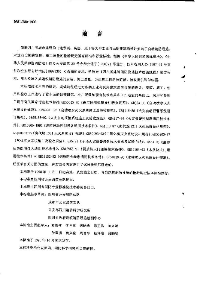 DB51/ 280-1998 建筑消防设施技术检验规程