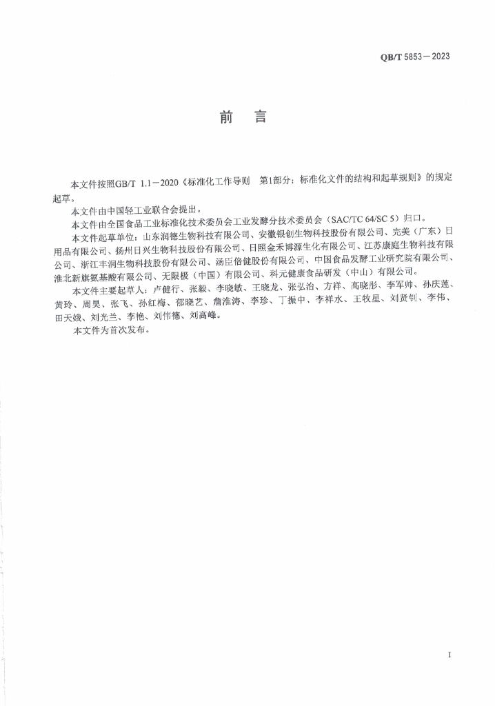 山东润德生物科技有限公司、安徽银创生物科技股份有限公司、完美(广东)日用品有限公司、扬州日兴生物科技股份有限公司、日照金禾博源生化有限公司、江苏康庭生物科技有限公司、浙江丰润生物科技股份有限公司、汤臣倍健股份有限公司、中国食品发酵工业研究院有限公司、 淮北新旗氨基酸有限公司、无限极(中国)有限公司、科元健康食品研发(中山)有限公司