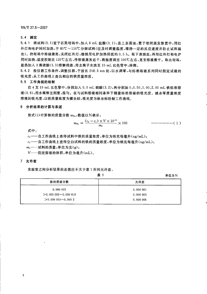 YS/T 37.5-2007 高纯二氧化锗化学分析方法石墨炉原子吸收光谱法测定铁含量