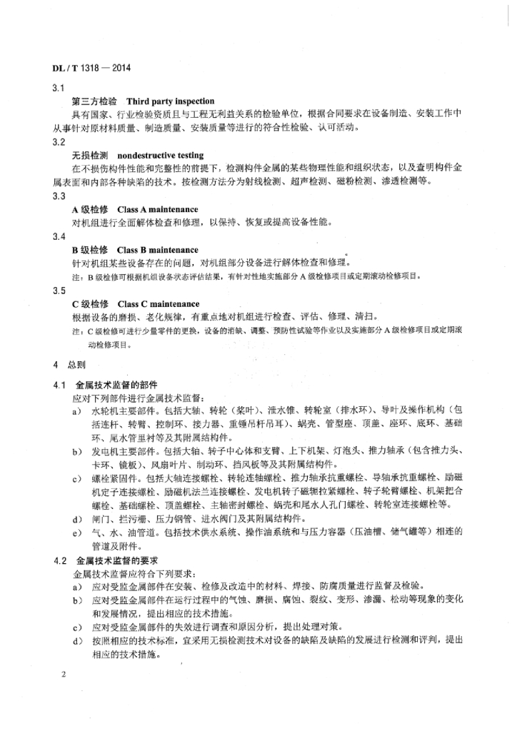 DL/T 1318-2014 水电厂金属技术监督规程